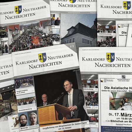 In den in Farbe gedruckten und mit einem ansprechenden, zeitgemäßen Layout aufgemachten Karlsdorf-Neutharder Nachrichten finden Sie Woche für Woche viele aktuelle und nützliche Informationen rund um das Gemeindeleben, Mitteilungen der Gemeindeverwaltung, öffentliche Bekanntmachungen, Nachrichten von den Vereinen, den Kirchen, Parteien und Wählervereinigungen.