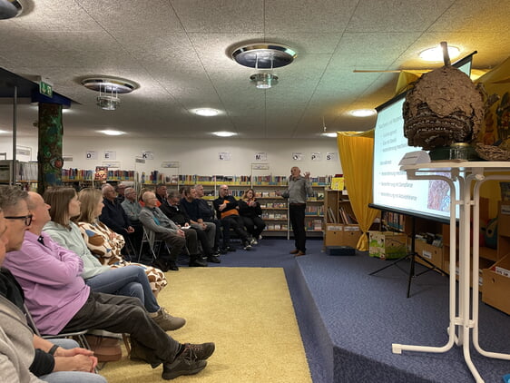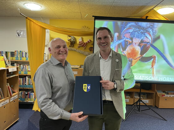 Die Gemeinde hatte zusammen mit dem örtlichen Imker und Fachmann Armin Riffel in Kooperation mit der Bibliothek zu einem Vortrag über Asiatische Hornissen eingeladen.