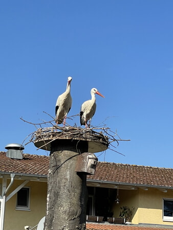 Frühlingsboten: Zwei Klapperstörche haben beim Vogelpark Neuthard ihr Nest bezogen.